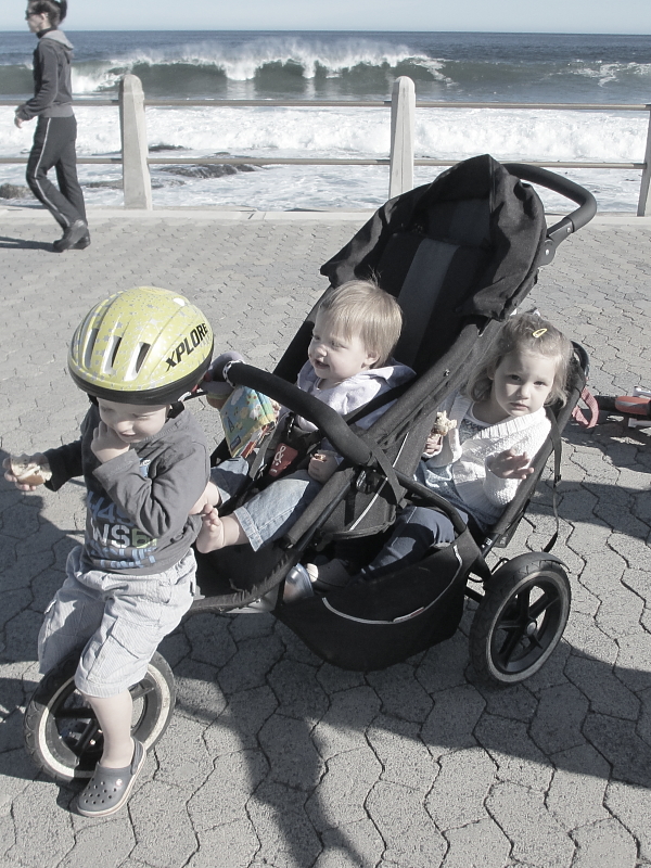 In the car on the way she ate her snack, and was just her normal self looking at cars, spotting white Citi Golf’s, and asking where people are going and about the different cars.