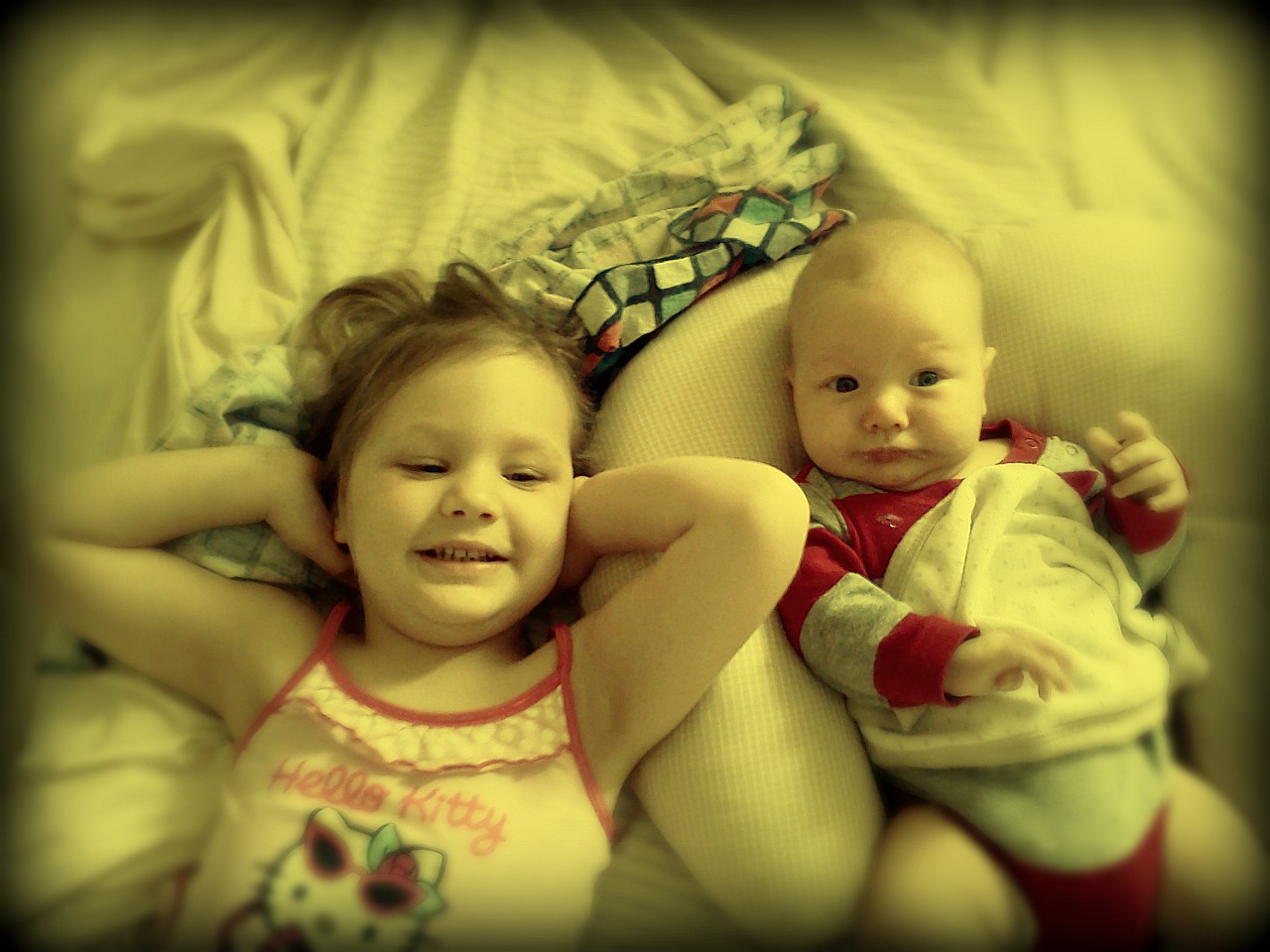 Grace loves it when Eli smiles at her, or even just vaguely in her direction. She says (in her super high pitch squeaky voice), "He smiled at me! Babies are sooo cuuute."